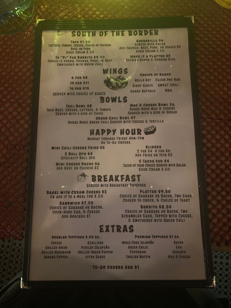 The menu features budget-friendly starters like Chips & Salsa and Fries, perfect for sharing with friends. The standout is the South Of The Border Quesadilla, a delicious bite that transports you south of the border. For a hearty meal, the B.Y.O.B. Hamburger is customizable and comes with a choice of fries or tots, delivering satisfaction in every bite.